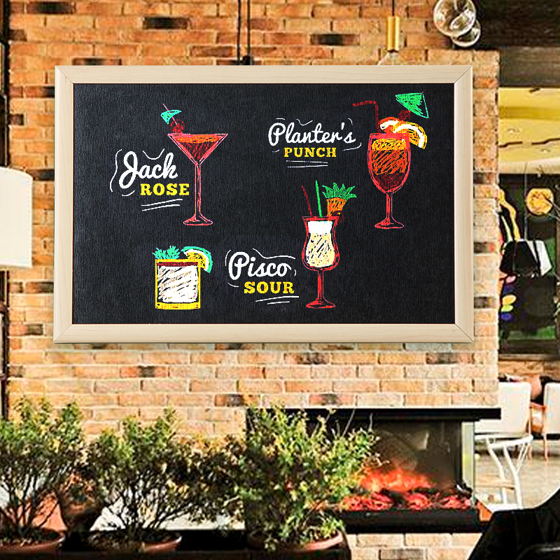 Wood Frame Blackboard Magnetic Hanging Small Blackboard Office Home Chalkboard Wall Chalk Writing Commercial Green Board Shop Display Board Message Board Home Children Instructional Fluorescent Handwriting Propaganda Advertising Exhibition Board