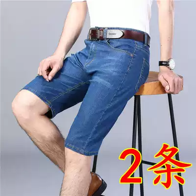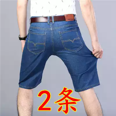 Denim shorts men's summer thin men's five-point casual jeans Korean breeches loose straight five-piece pants men