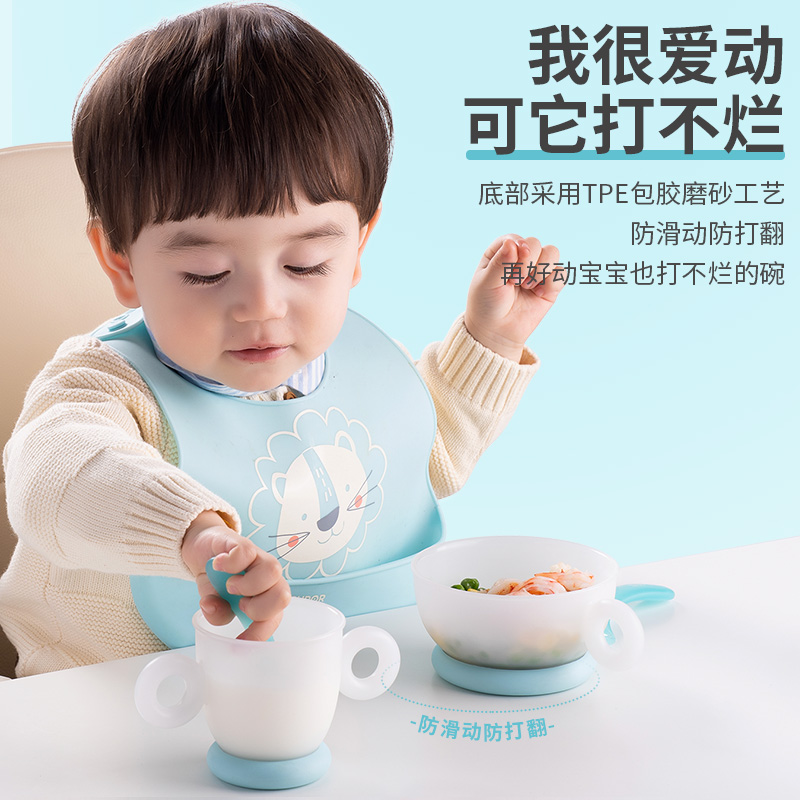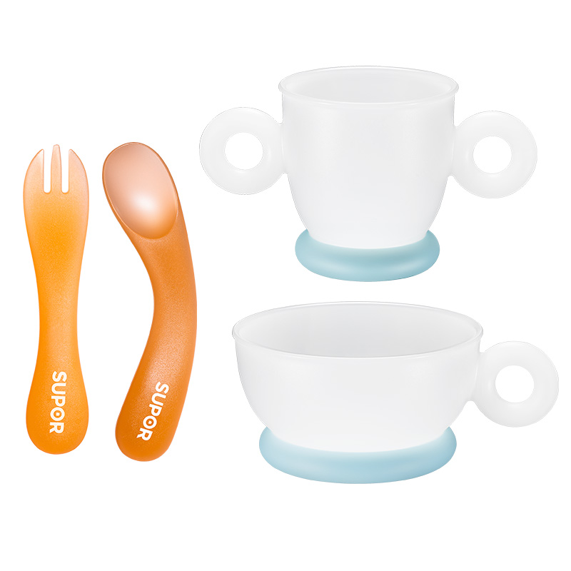 Supor baby bowl spoon set baby eating non-staple food bowl children's food grade tableware anti-fall anti-scalding portable