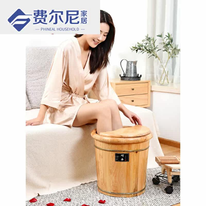 Foot soaking barrel wood 40cm high and deep barrel foot soaking basin wooden barrel household solid wood over calf wood foot bath foot wash bucket