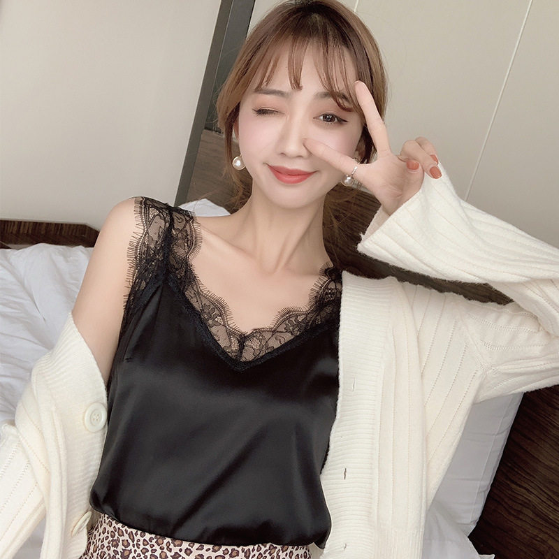 (mulberry silk) genuine silk harness vest female lace V collar suit with undershirt silky satin small vest