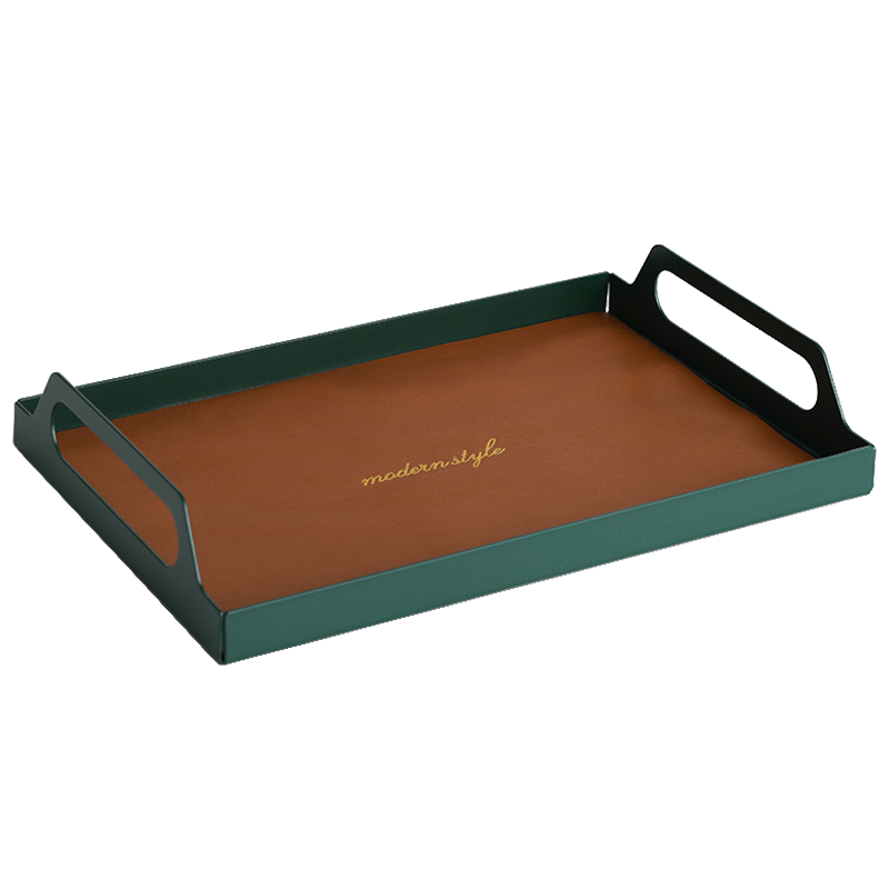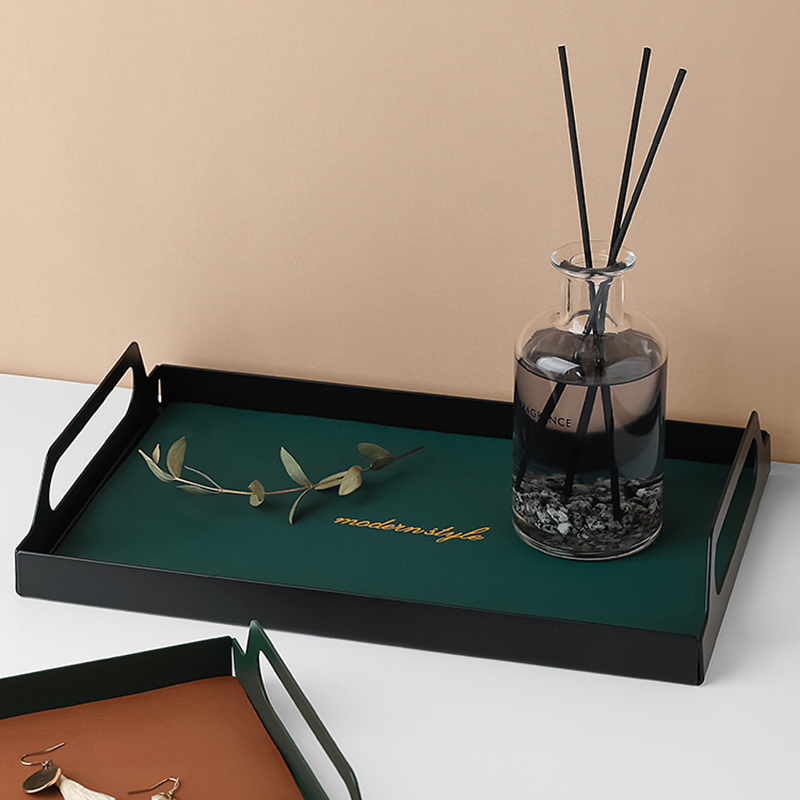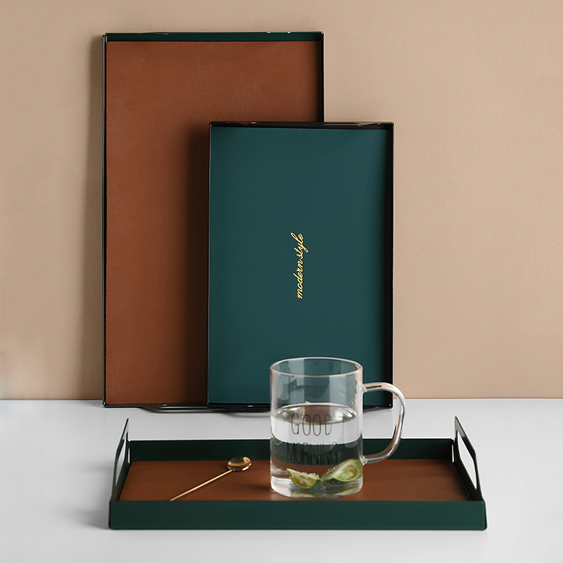 LIVETAI Entrusted Trays Long Morandi Iron Art Leather Containing Pan Light Lavish Jewelry Ink Green Home Water Cup Nursery