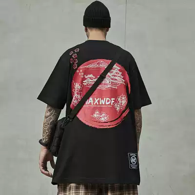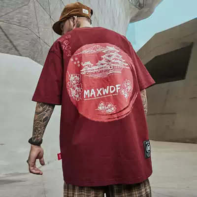 National tide retro Chinese style city house printing short-sleeved men's loose cec lazy wind street trend brand men's top