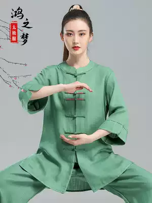 Taiji clothing women Summer elegant spring and summer cotton linen middle sleeve 2021 new clothes tai chi practice Gong suit short sleeve set