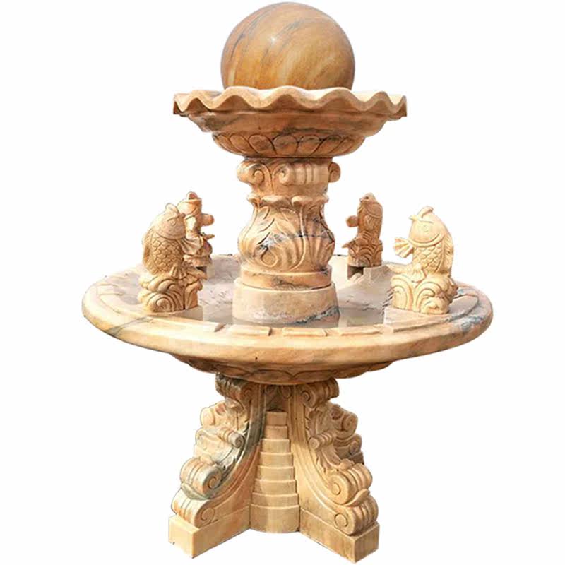 Yellow embroidered stone late glow stone carving fountain outdoor courtyard flowing water landscape European custom villa decoration interior decoration