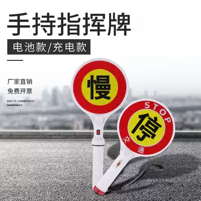 Traffic command plate handheld rechargeable stop sign stick indicator light warning parking hand raise light stick