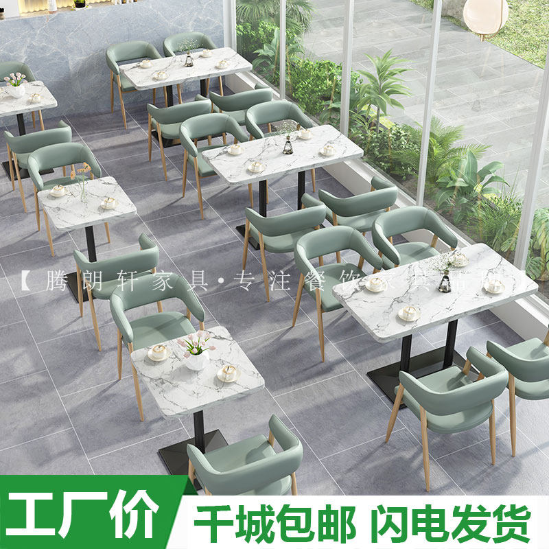 Simple Net red milk tea shop dessert burger shop coffee shop fast food snack bar against the wall card seat sofa table and chair combination