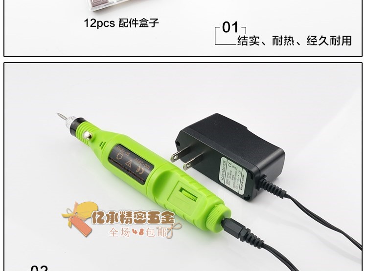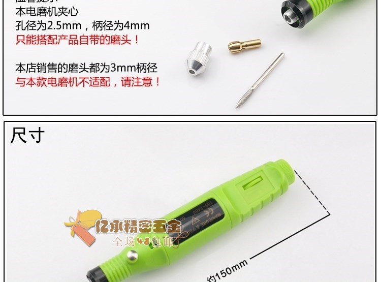 Electric grinding pen complete set (3MM chuck free) electric pen color random hair