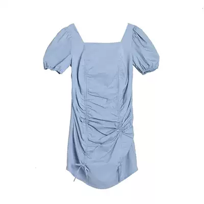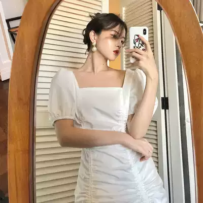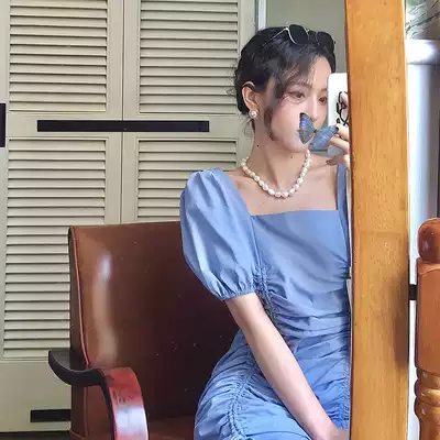 Wine afternoon 2021 summer new French retro pleated dress bubble sleeve square collar chiffon a short skirt children