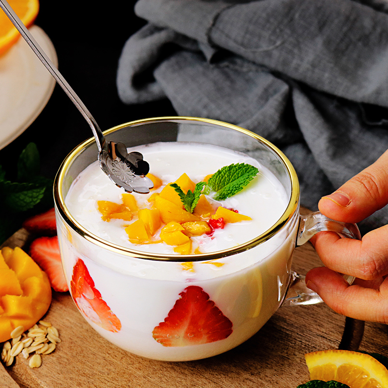 Lemeja Glass Milk Cup Large Capacity Breakfast Cup High Temperature Resistant bring home with lid spoon oat cup Microwave