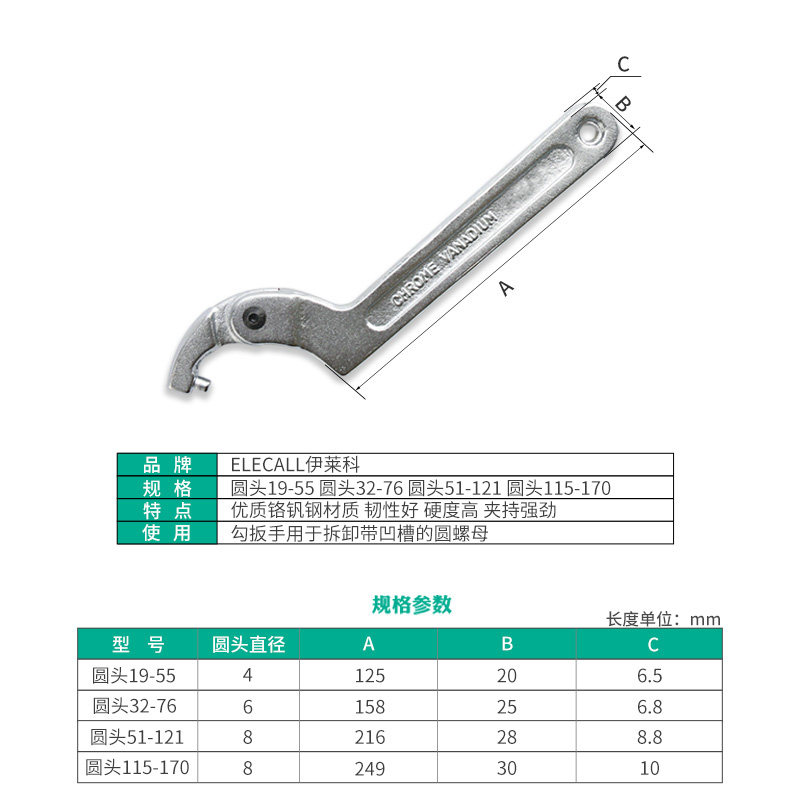 Ileko Crescent Wrench Hook Type Wrench Hook Head Wrench Semi-circular Wrench Adjustable Tool Round Nuts-Taobao