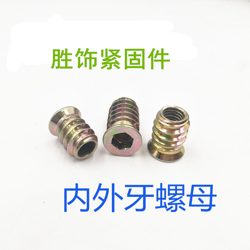 Inner and external dental nuts with solid wood nuts sink head hexagonal furniture pre - buried with galvanized M6M8M10