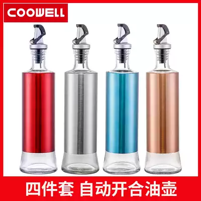 coowell kitchen automatic opening and closing oil pot glass oil bottle leak-proof stainless steel soy sauce vinegar seasoning bottle set