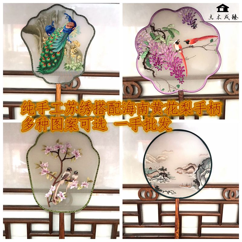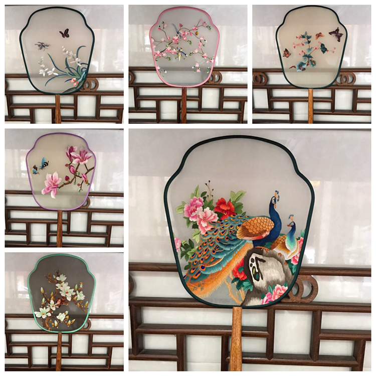 Palace Fan Group Fan Classical China Wind Ancient Wind Pure Handmade Su Embroidery Embroidery Hainan Yellow flower pear long handle Flow Su Tang Wind