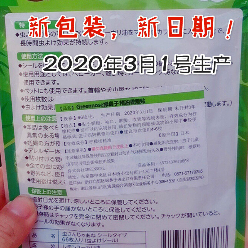Japan green nose mosquito repellent patch Children's natural plants outdoor anti-mosquito long-lasting infant safety Li Jiaqi with the same paragraph