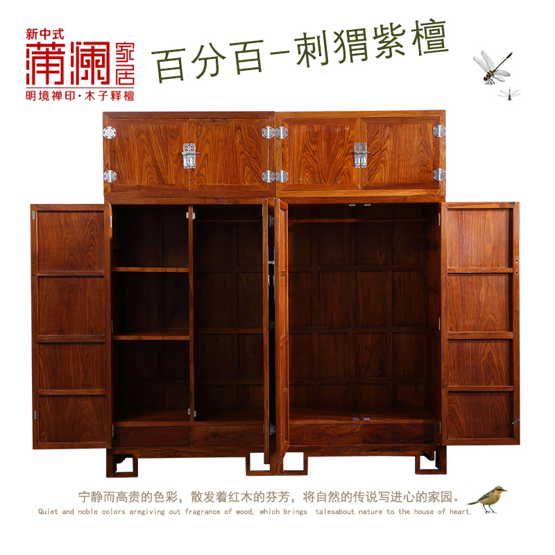 Pulan new Chinese style mahogany top cabinet wardrobe hedgehog rosewood rosewood bedroom overall Suli Kyocera furniture