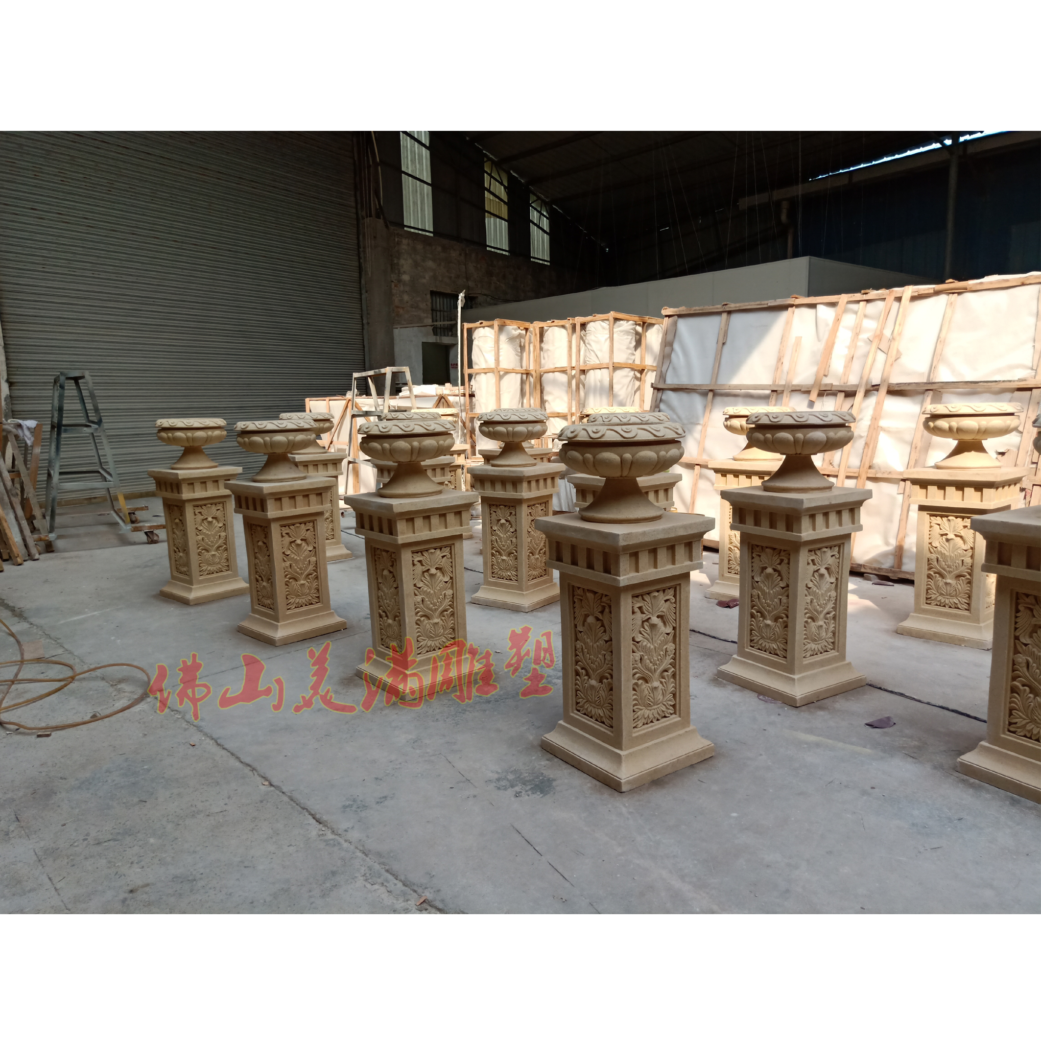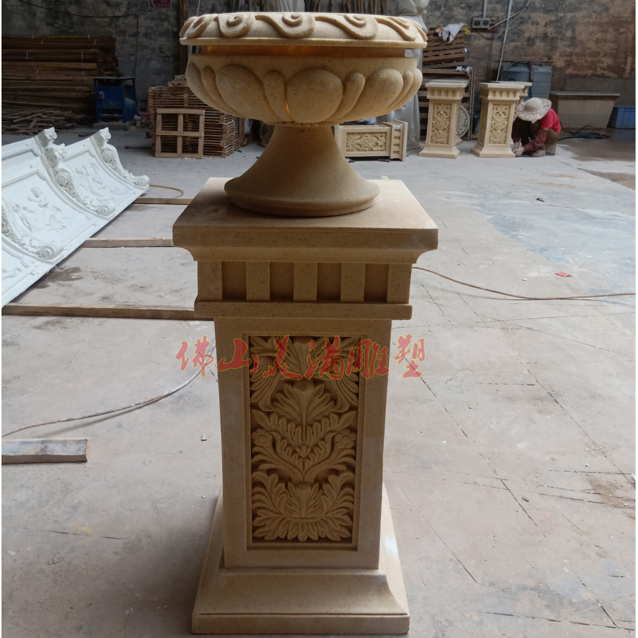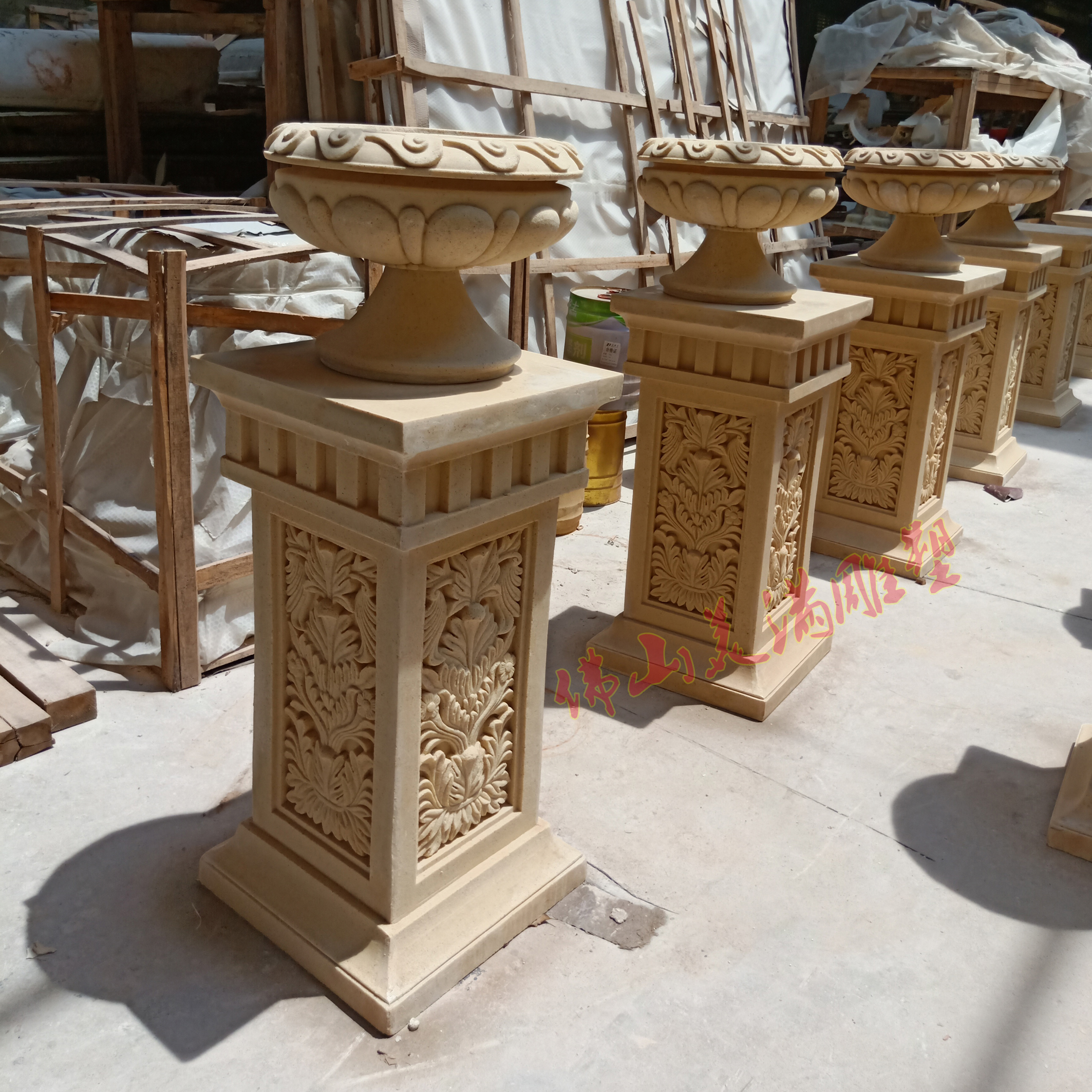 Factory direct sales sandstone flower pot flower bowl Sandstone relief sculpture garden community landscape Sandstone column pier base