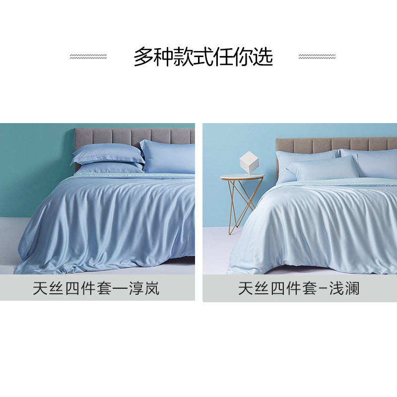 Boyo pure color 40S days silk four sets silk sliding naked bed linen quilt cool bed with bedding brief spring summer