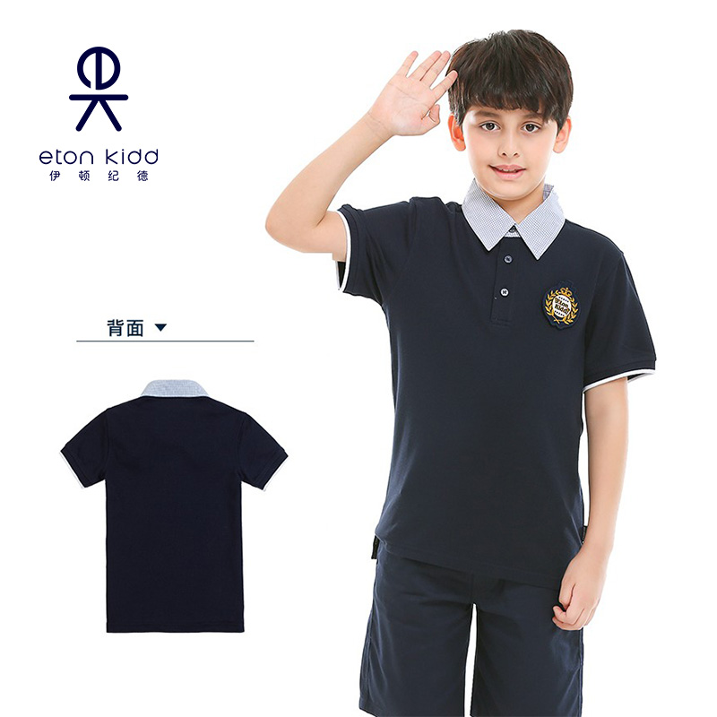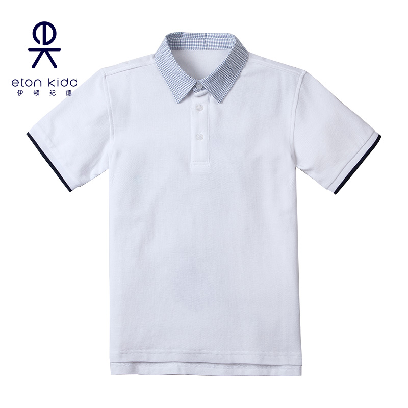 Yaton Guild primary and secondary school uniforms boy Tibetan white short sleeve T-shirt Summer pure cotton pane collar polo shirt