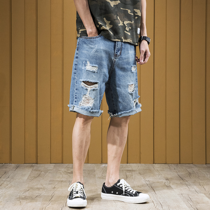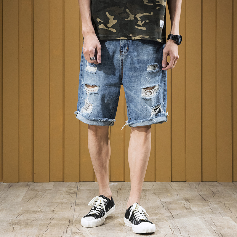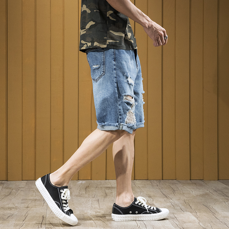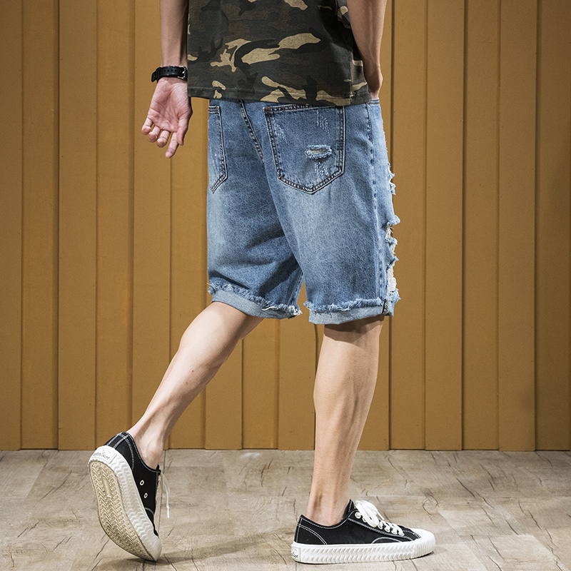 Summer hole jean shorts men five-pants fat men fat men weighed with large-code loose beggar pants