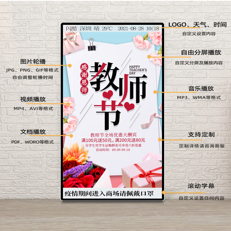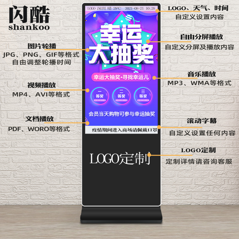 43 43 50 55 65 65 4K high-definition advertising machine wall-mounted LCD advertising screen vertical floor landing Android touch interactive inquiry All horizontal vertical screen mall promotional poster player