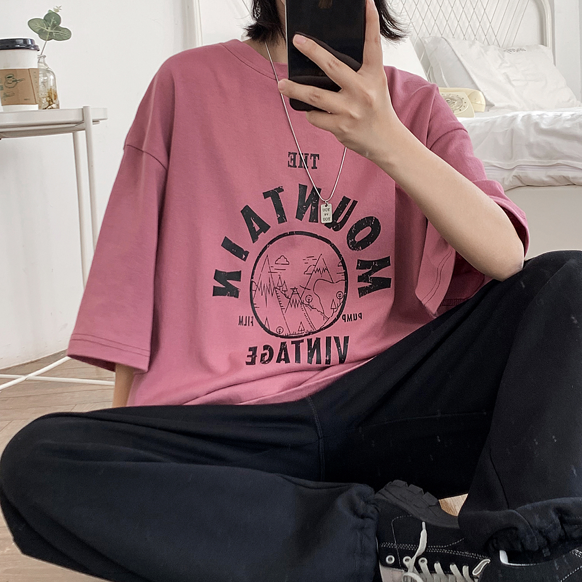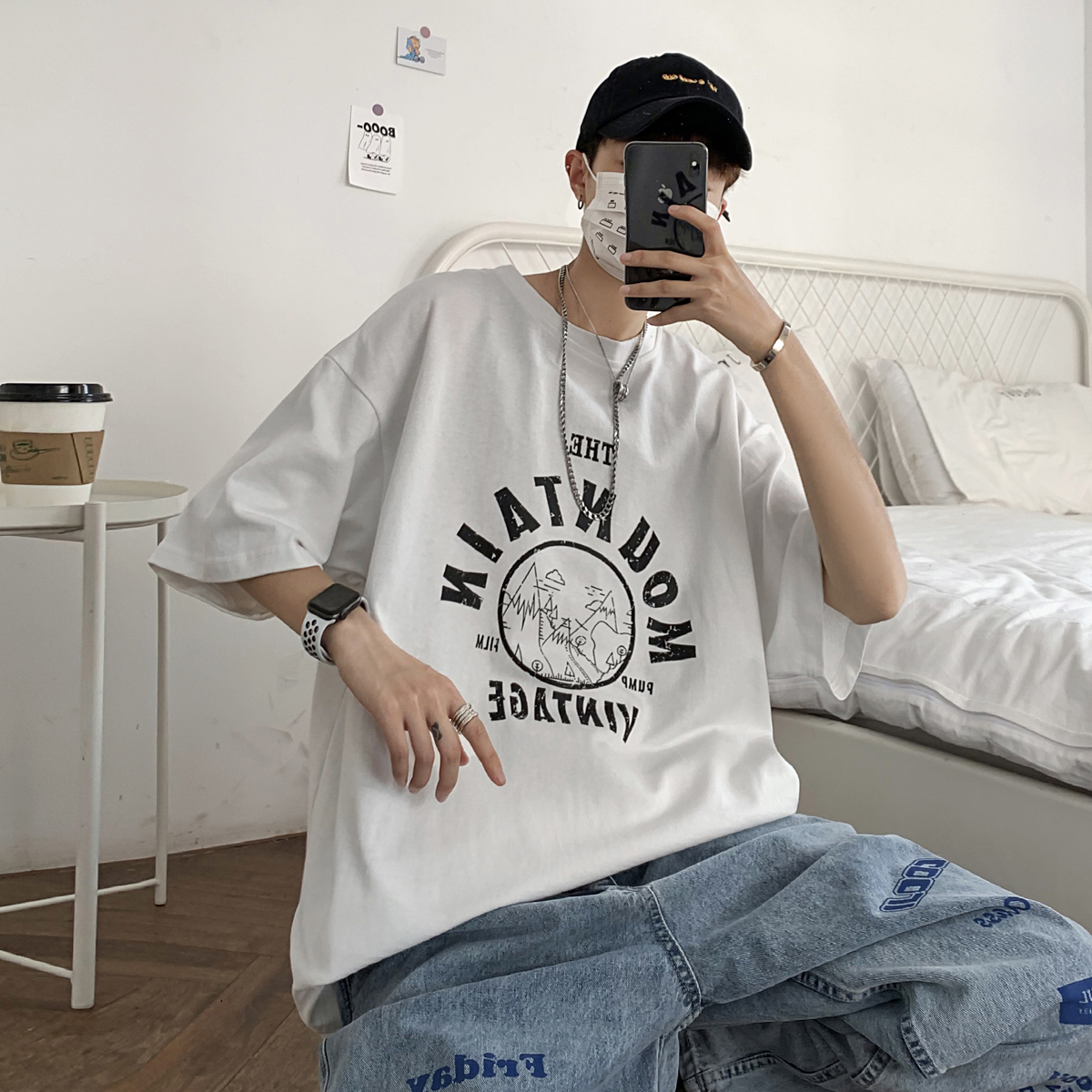 Short-sleeved T-shirt Men's Tide Brand Fashion Cotton Clothes Hong Kong Wind Half-Sleeve Teenagers ins Loose Top Backing Shirt T-shirt