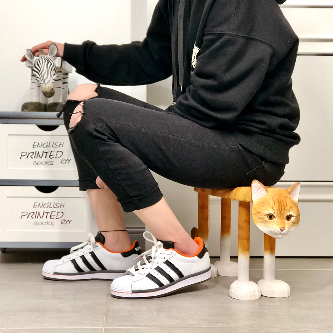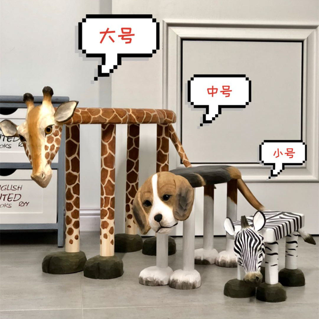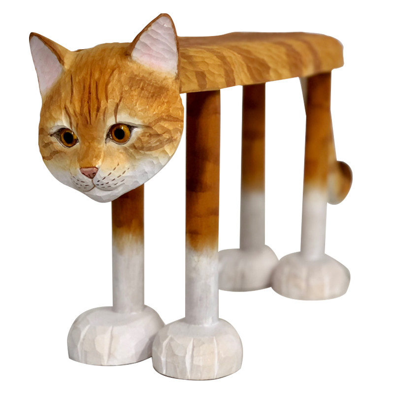 Solid wood hand engraving midsize orange cat short stool tea table stool for changing shoes stool