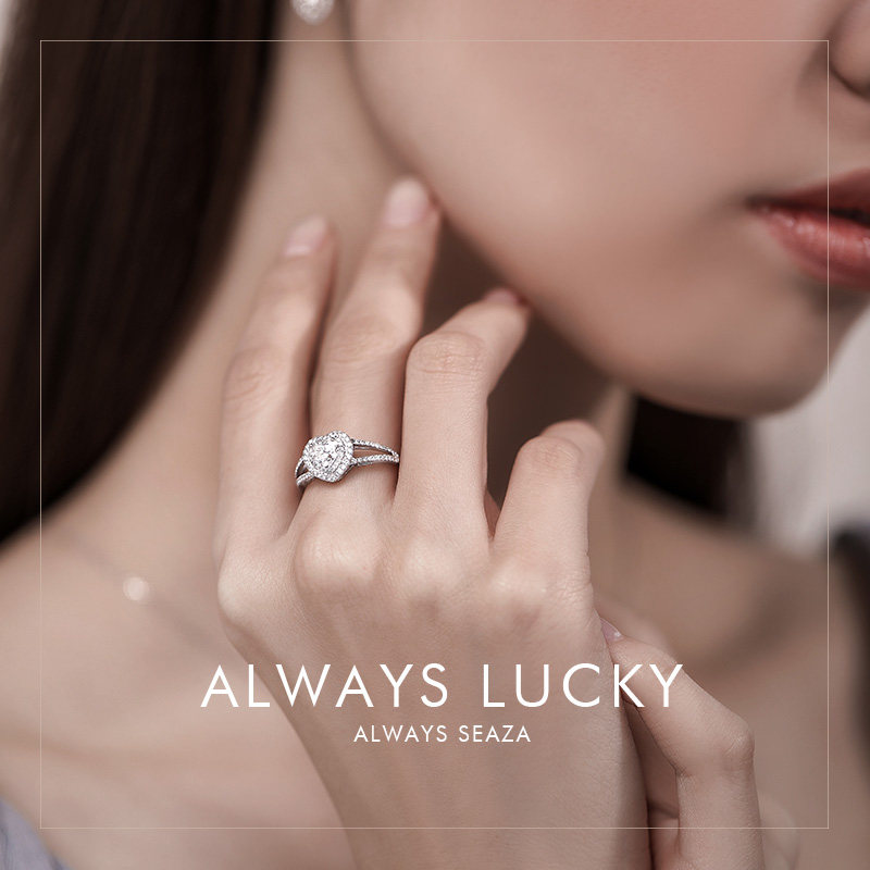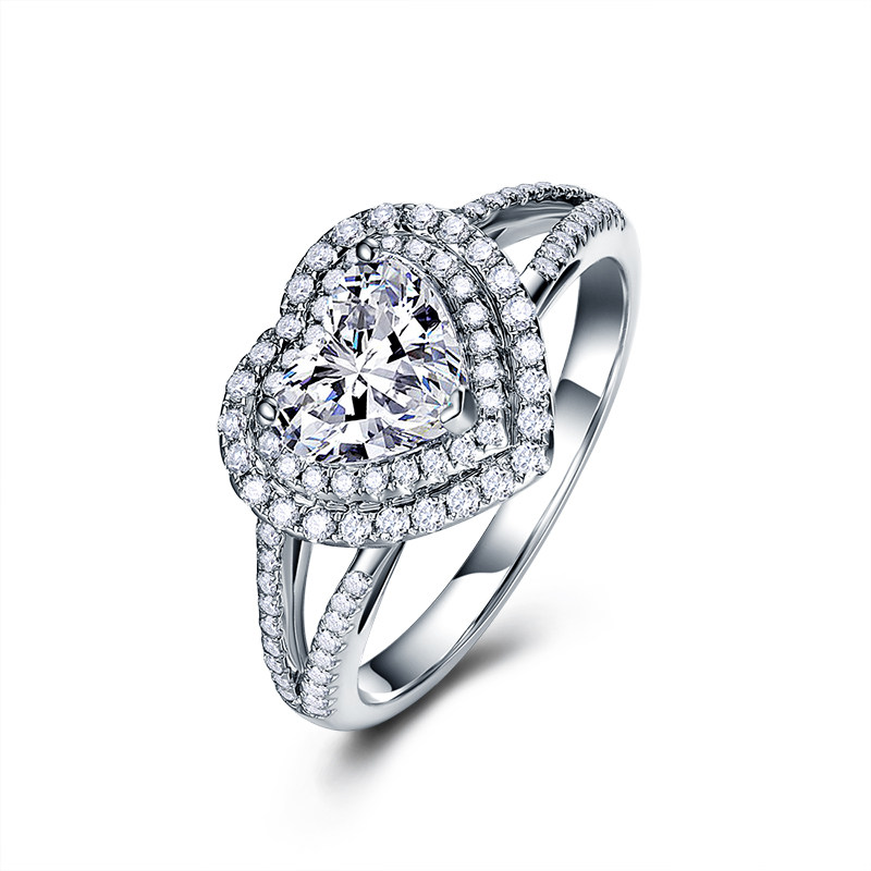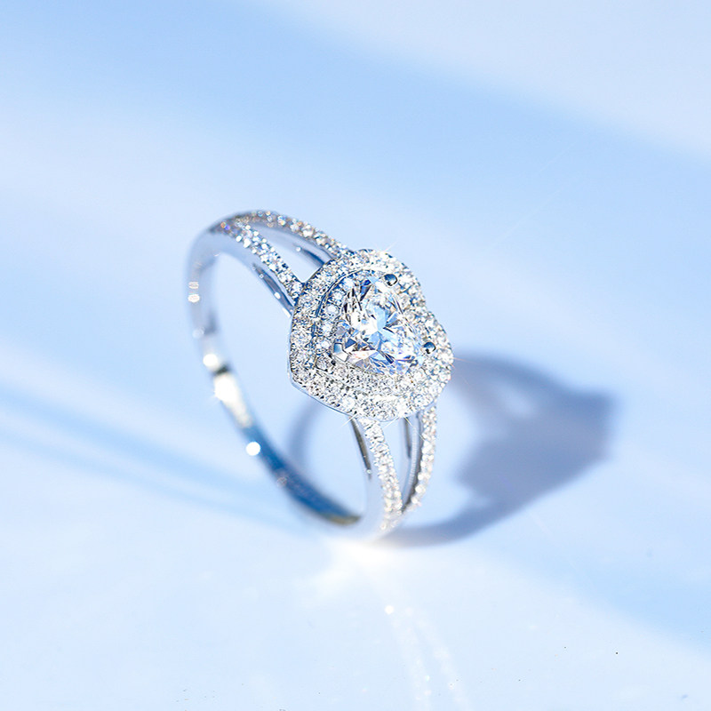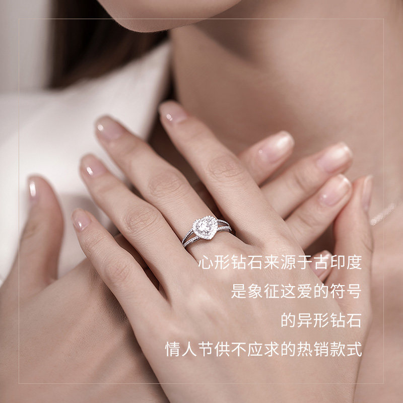 Happy diamond diamond ring female heart-shaped diamond ring wedding ring group set brick ring white 18K gold engagement wedding ring