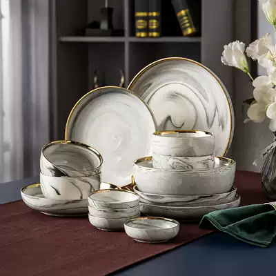 Nordic ins Phnom Penh marble dishes set household ceramic dishes eating bowls light luxury creative tableware