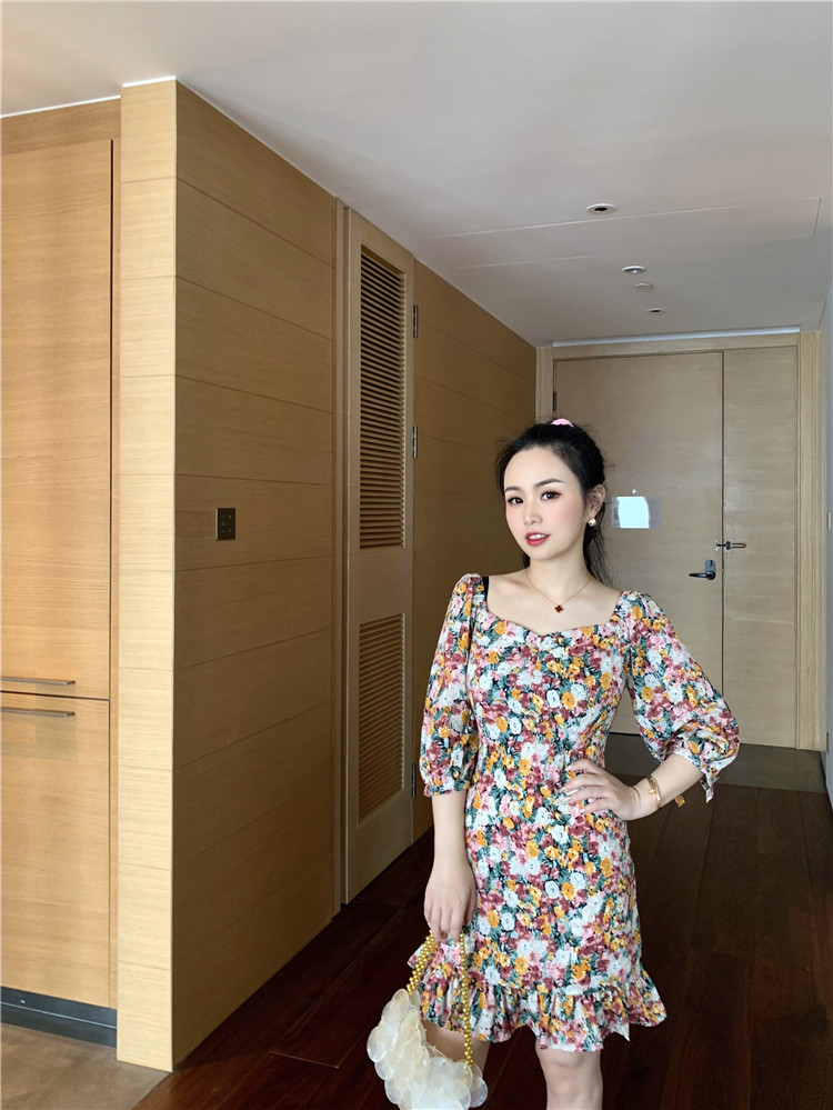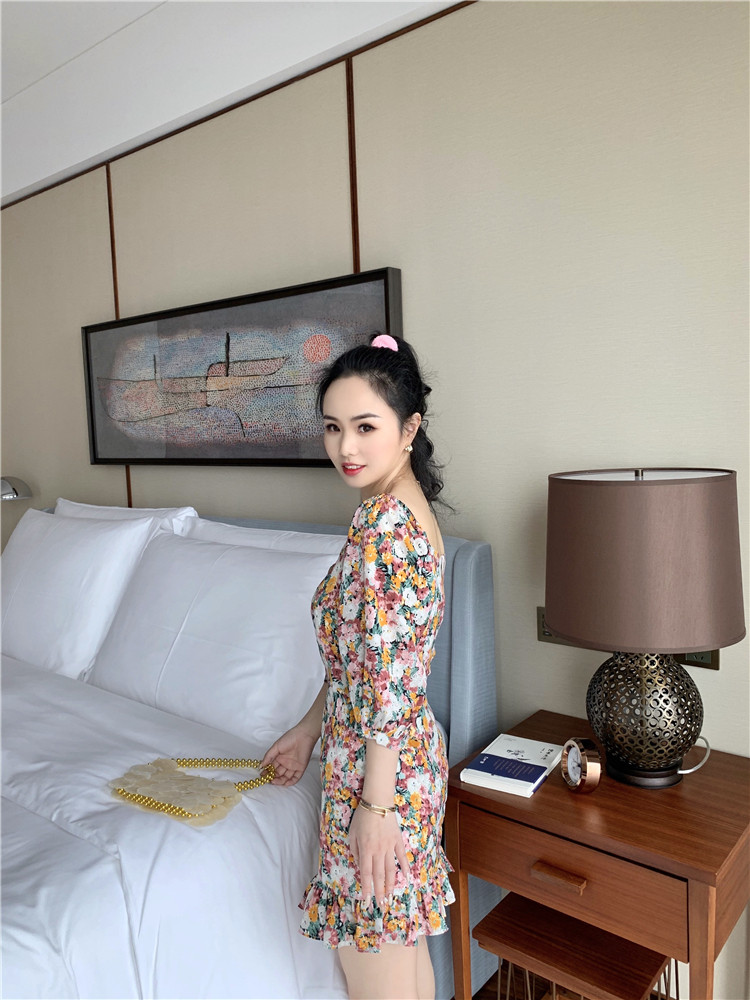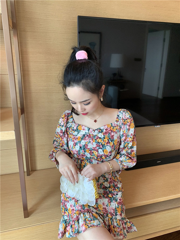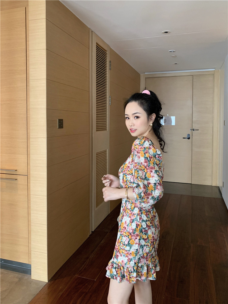 Small V-neck Floral Chiffon Dress Women's 2020 Summer French Retro Waist Thin Temperament Sexy Short Skirt