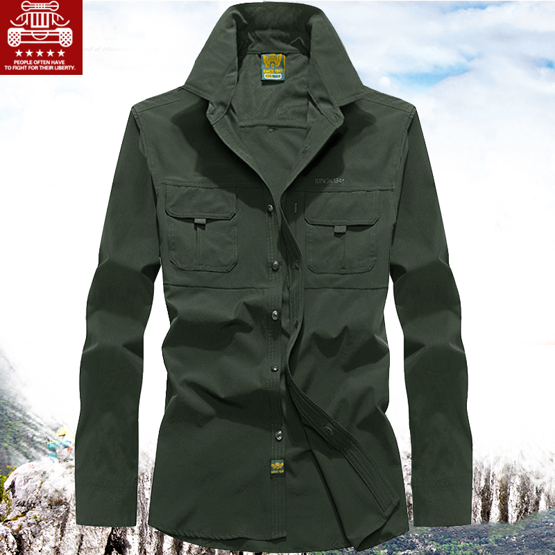 Battlefield jp summer elastic quick-drying non-ironing shirt men's outdoor ice silk loose water-repellent mountaineering tooling shirt
