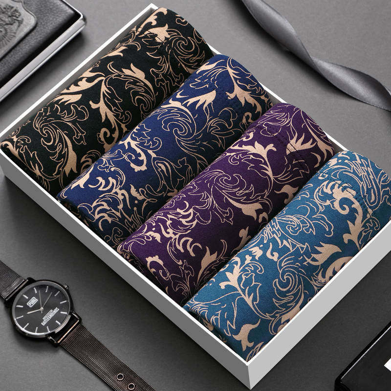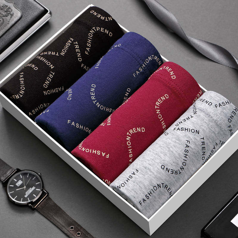 4 articles for men's underwear men's four corners underpants cotton large size for loose sexy four-corner pants head spring and summer breathable comfort