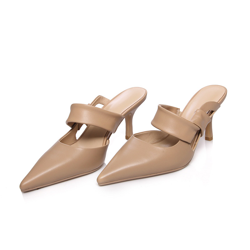 Slippers outwear inins Chaonets red 2021 new European and American dermis high heel tip fine heel semi-tugging Mueller sandals