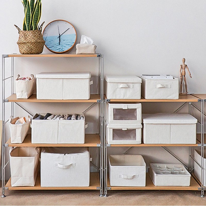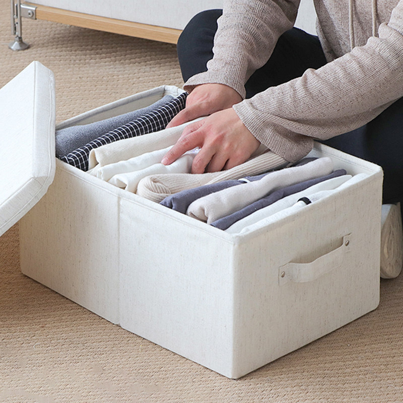Natural cotton linen fabric wardrobe Folding storage box with cover Clothing storage box Clothes storage finishing box