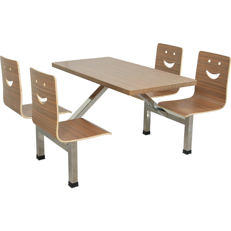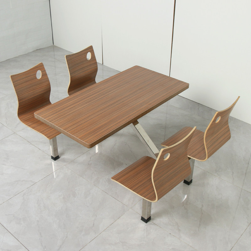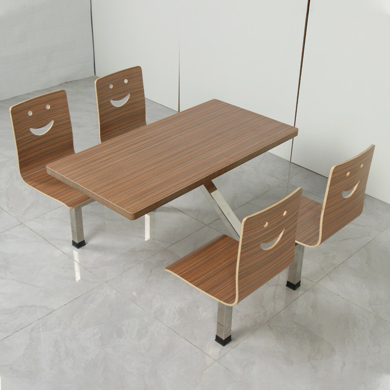 Student staff canteen dining table and chair combination snack bar 4 people 6 people 8 stainless steel fiberglass one-piece fast dining table and chairs