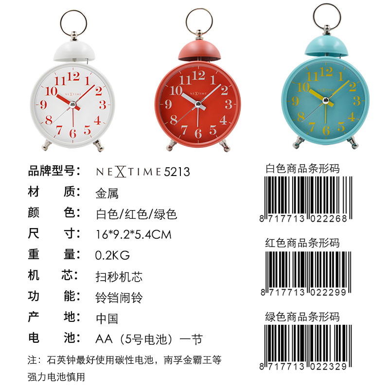 NeXtime Netherlands Instant sky Nordic simple watch style Metal bell big bell Silent bedroom small alarm clock