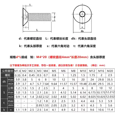 Flat head hexagon socket screw 304 stainless steel countersunk head flat cup screw socket hexagon Bolt M2M2 5M3M4M5