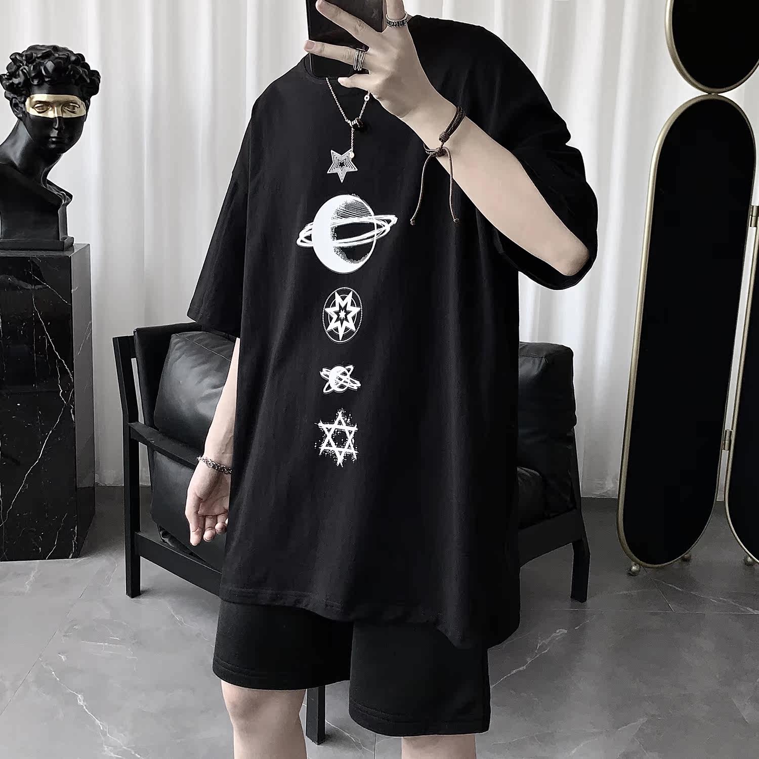 Dark Ensemble Men's Summer Original Juku Wind Short Sleeve T-Shirt Male Tide Cards Trend Loot and Inn Wind 100 Lap Clothing