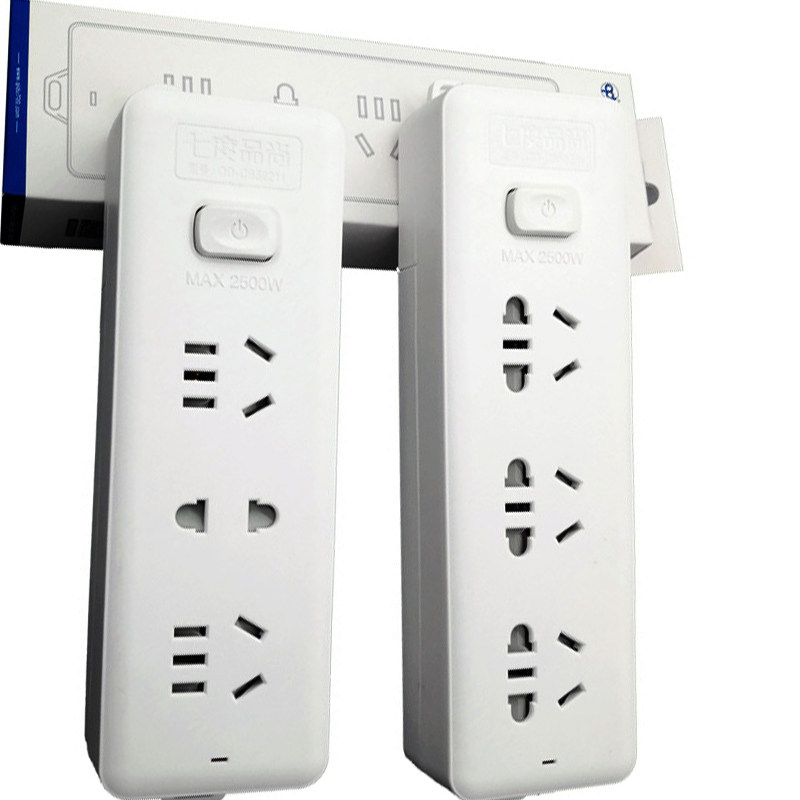 Plug row ultra-thin flat small rotary plug with switch three-hole multi-position socket two-core flat wire perforated self-wiring plug-in board