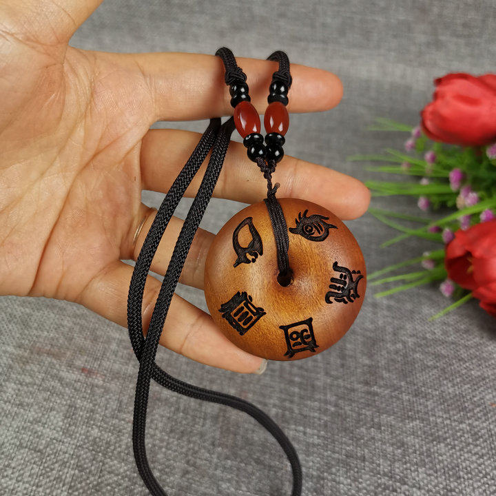 Lightning strike wood safety buckle lightning strike jujube wood Taoist instrument cross seven star gossip car pendant waist ornament six-character mantra