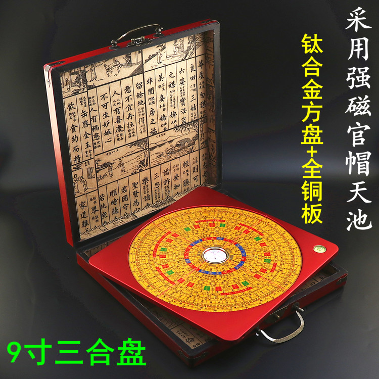 Jifutang titanium alloy 9-inch three-in-one compass full copper plate lettering compass high-precision strong magnetic officer hat Tianchi