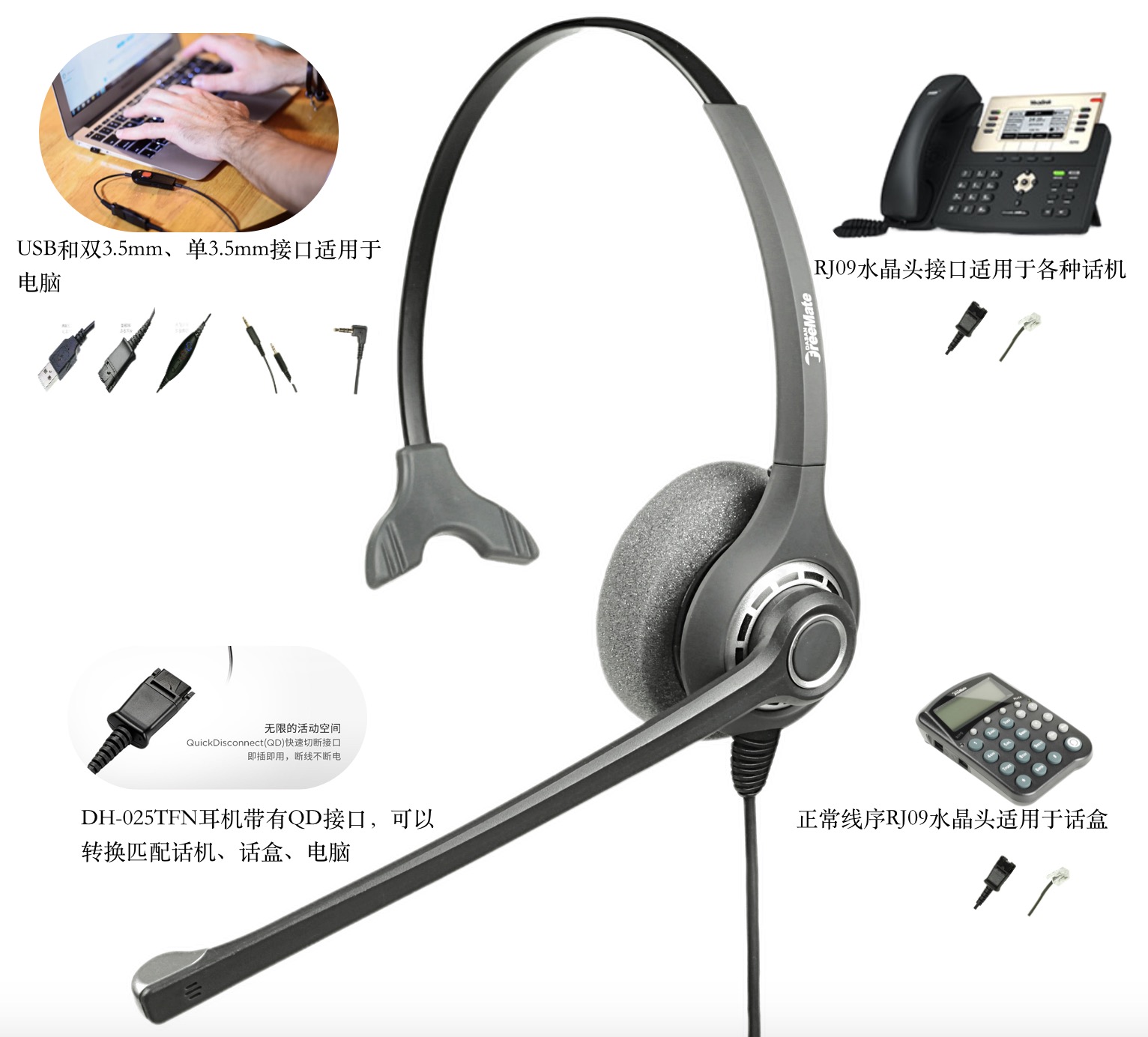 Separate headphones (without line) The matching crystal head QD line (telephone used) with 3 5mm pc line (computer used) with DA40USB line with Cisco telephone special line for the supply of the ava