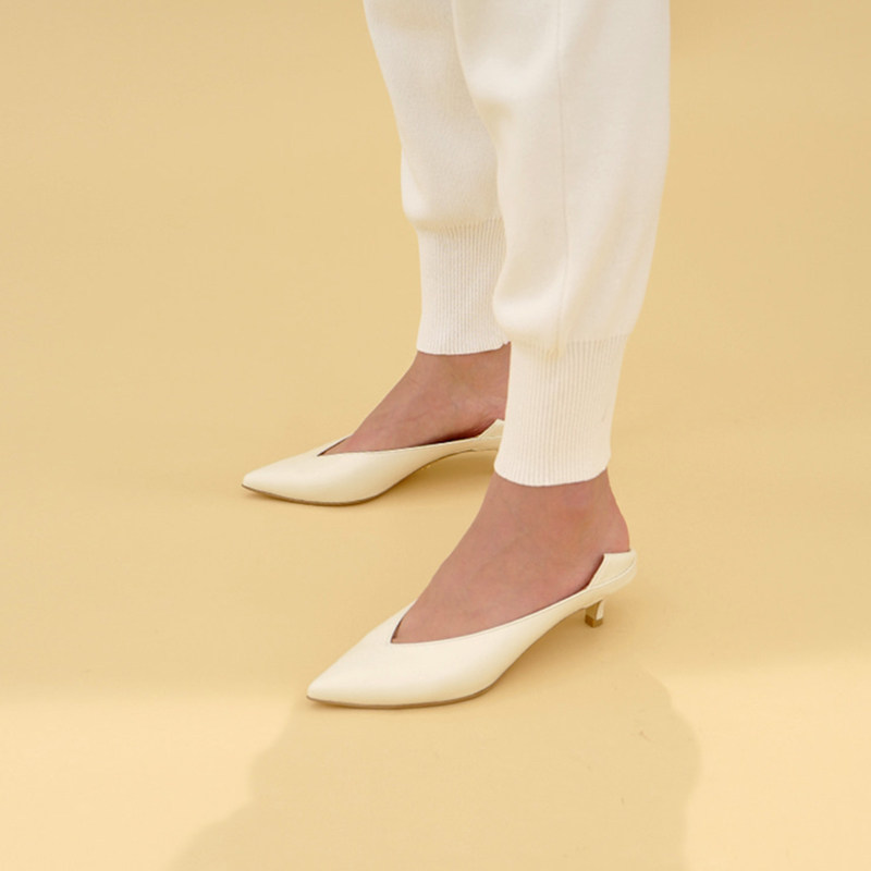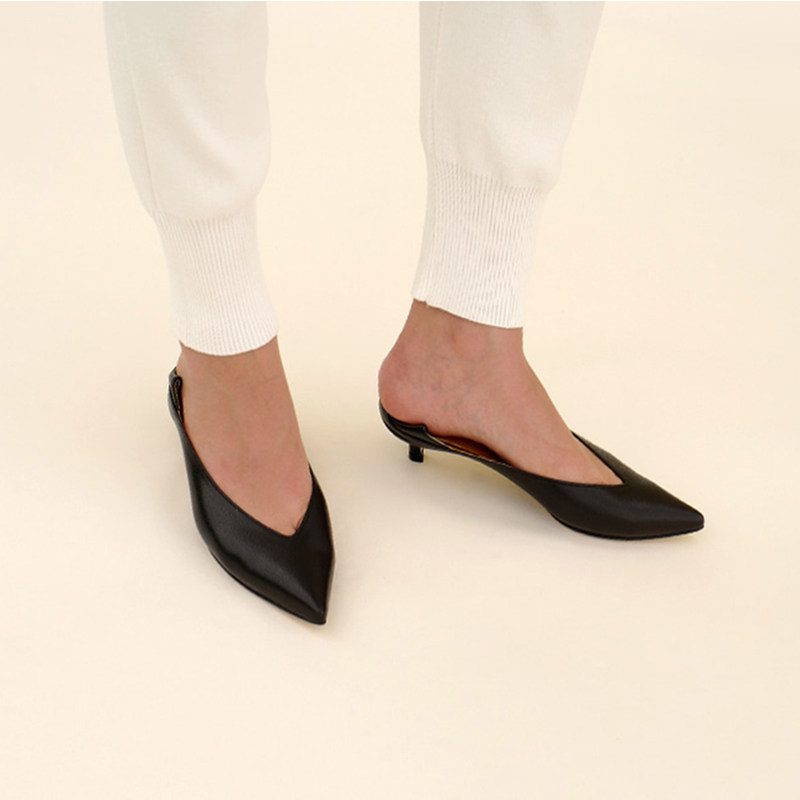 2021 Korea pointed shallow mouth single shoe woman with soft leather v mouth thin heel handmade shoes high heel shoes are very long-footed