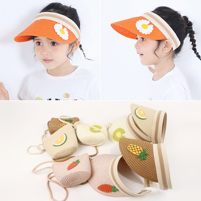 Small daisy children's hat sun hat summer boys and girls sun protection straw hat bag baby sun hat empty top hat tide