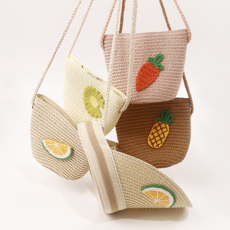 Pink-Rot Khaki-Pineapple Beige-Lemon Black-Small Yellow Flower Milky White Yellow-Strawberry Orange-Daisy Purple-Avocado Khaki Hat Bag Powder