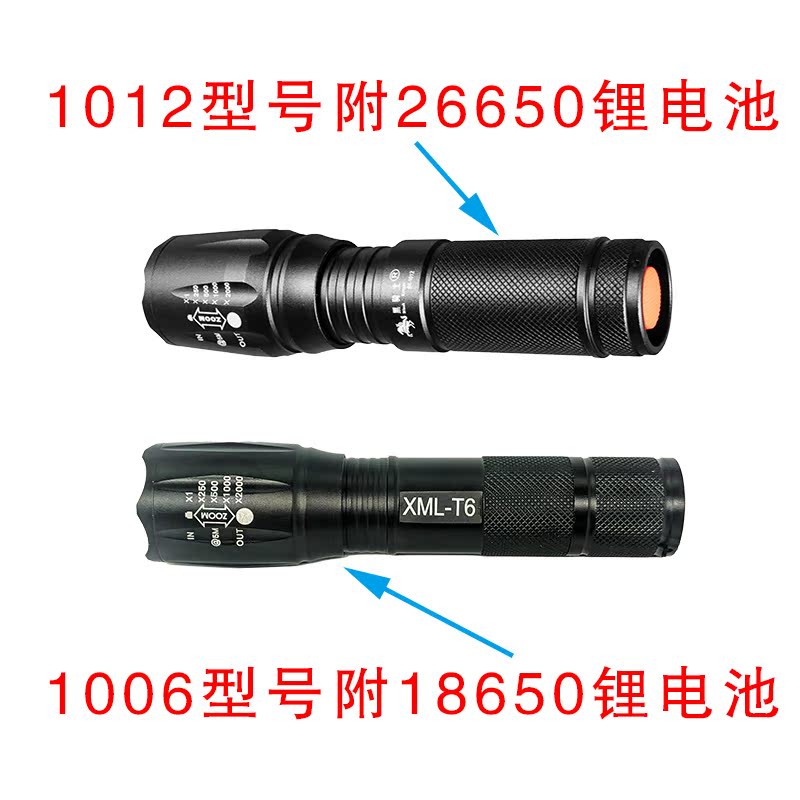 Black Knight strong light flashlight long-range ultra-bright outdoor zoom portable T6 multi-function rechargeable home lighting