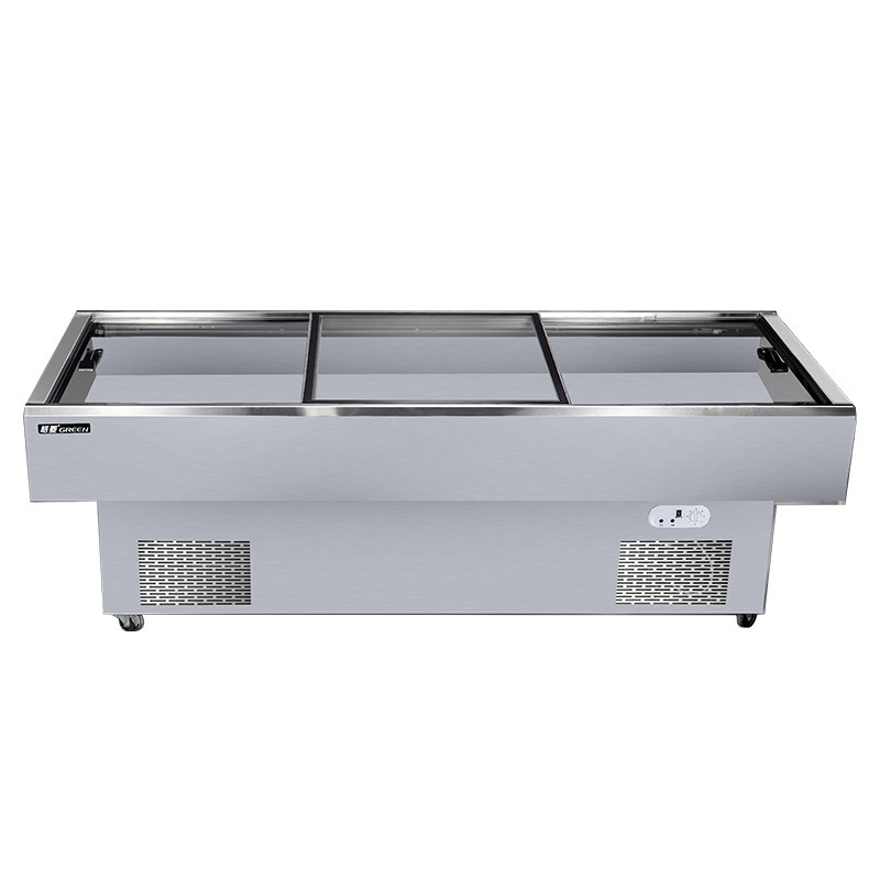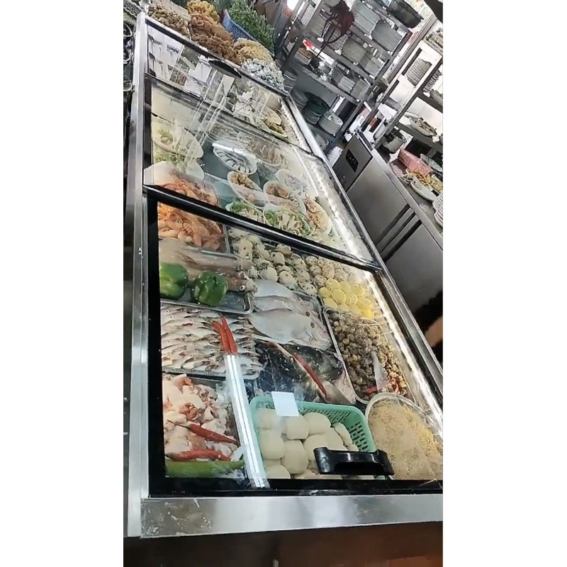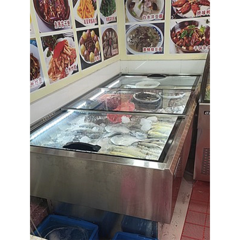 Garing Stainless Steel Flat Seafood Cabinet Commercial Cold Dish Display Cabinet Refrigerated Barbecue Bunch of Ice Cabinets Stall-stall refreshing cabinet