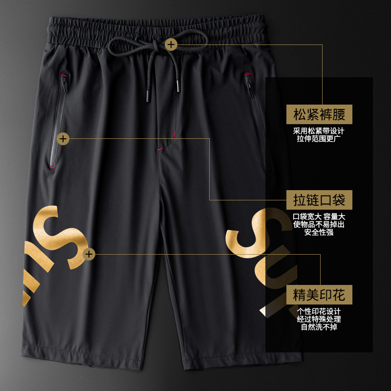 Counter plus size ice silk printed shorts men's fat loose casual sports pants middle pants 200 fat guy 280 breeches