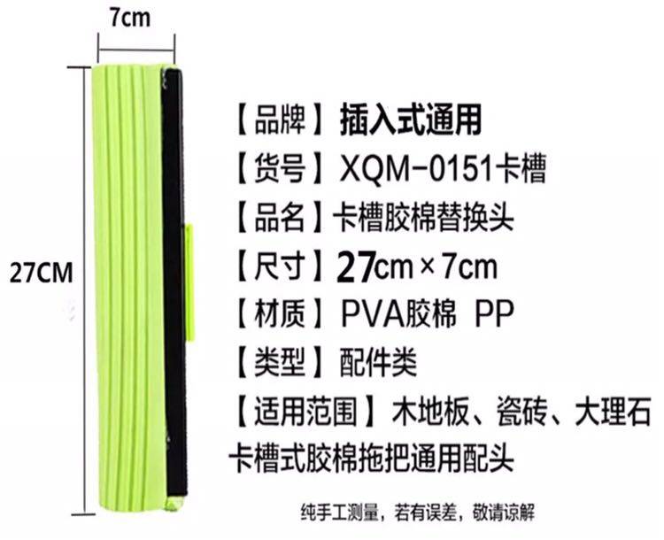 Miaojie 27cm universal roller rubber cotton mop head easy to remove replacement accessories card slot to strengthen absorbent sponge