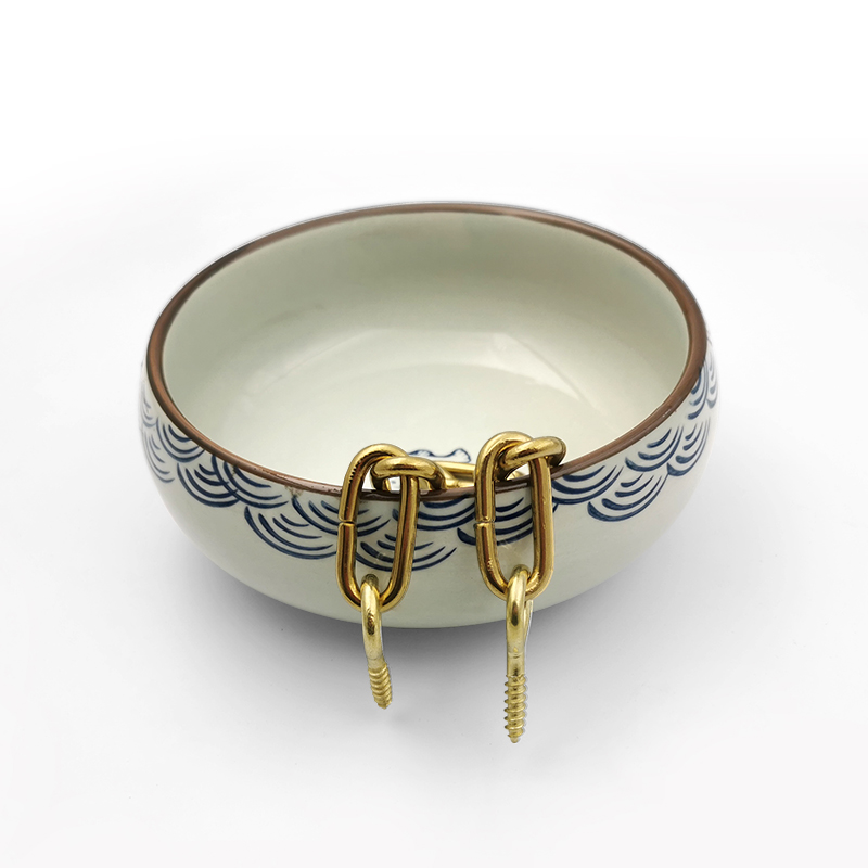 Copper chain plaque hanging obliquely connecting pure copper solid wood plaque signage calligraphy and painting framed small copper nail sheep's eye ring